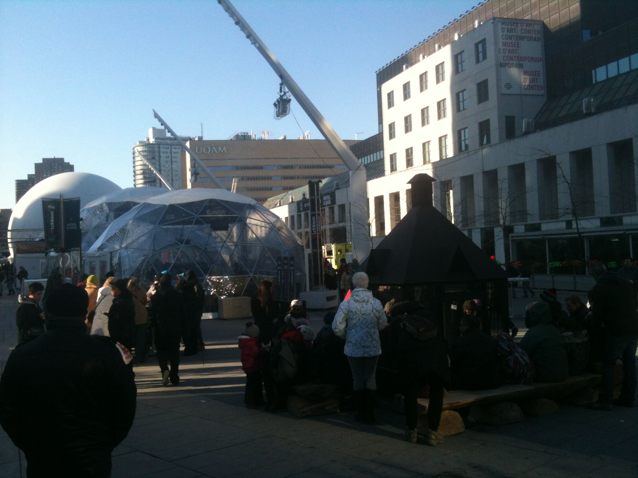 Montreal pulled a fast one of me as I was coming back. There was a festival in full swing at Place-des-Arts, Montreal en Lumiere. I was so happy to see a festival. There was food, music, food, fireplaces set up to warm up and some even to cook, food, a ferris wheel and… did I mention there was food? I had a chocolate gauffre (waffle), a poutine and a wapiti sausage that I cooked on the fire.