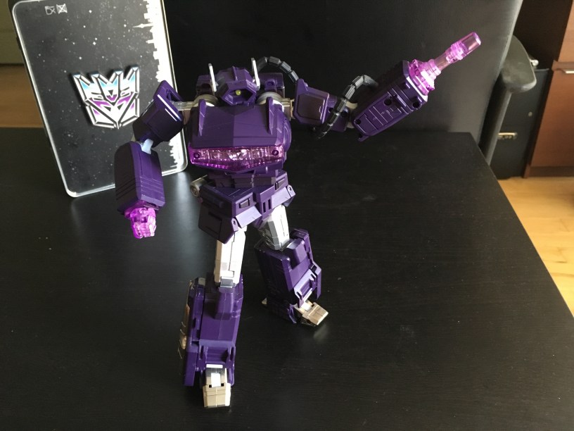 He looks very much the part in your masterpiece shelf alongside Megatron and the rest of the Decepticon gang. I frankly feel no inclination to seek out the Takara Tomy version, albeit now they have a re-issue in the cartoon colors. For now, he’s the only Shockwave my shelf needs.