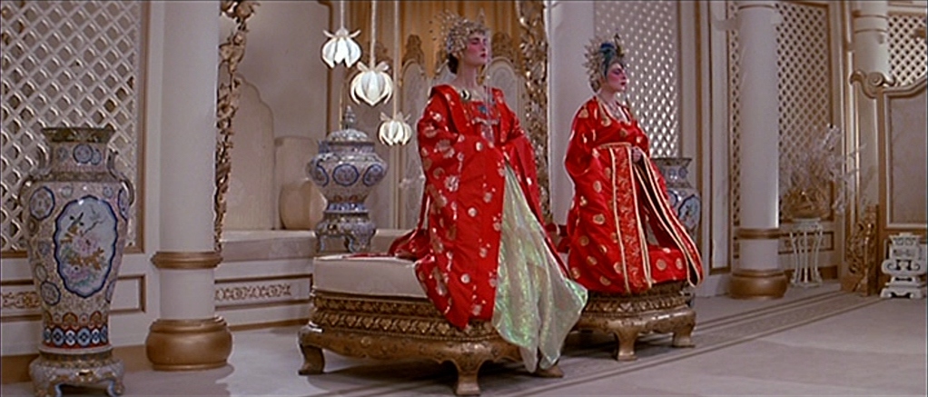 The visuals are gorgeous. We get golden Buddhas in a row on a luxurious corridor. Miao Yin and Gracie Law look striking in matching red attire and dramatic makeup in a white room. The foggy underground of Chinatown resembles a forest of Middle-Earth more than the sewer under the street. The practical effects of monsters and demons might look aged but still deliver most of its effect (add nostalgia lens for full effect). They don’t look any more cartoonish than Jack Burton trying to make quips in the face of the dark powers of Chinese demigods.