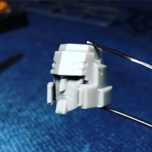 It always starts with the head, doesn’t it? It’s really well done but oh boy, it looks small. I can see why the more experienced amongst you will probably opt to highlight the features. I don’t really dare do that yet. Even without any painting this model kit remains striking enough, although I see how watercolors could made it pop. Perhaps one day. For now, even at beginner level assembly, you can tell that’s ole bucket head Megs himself.