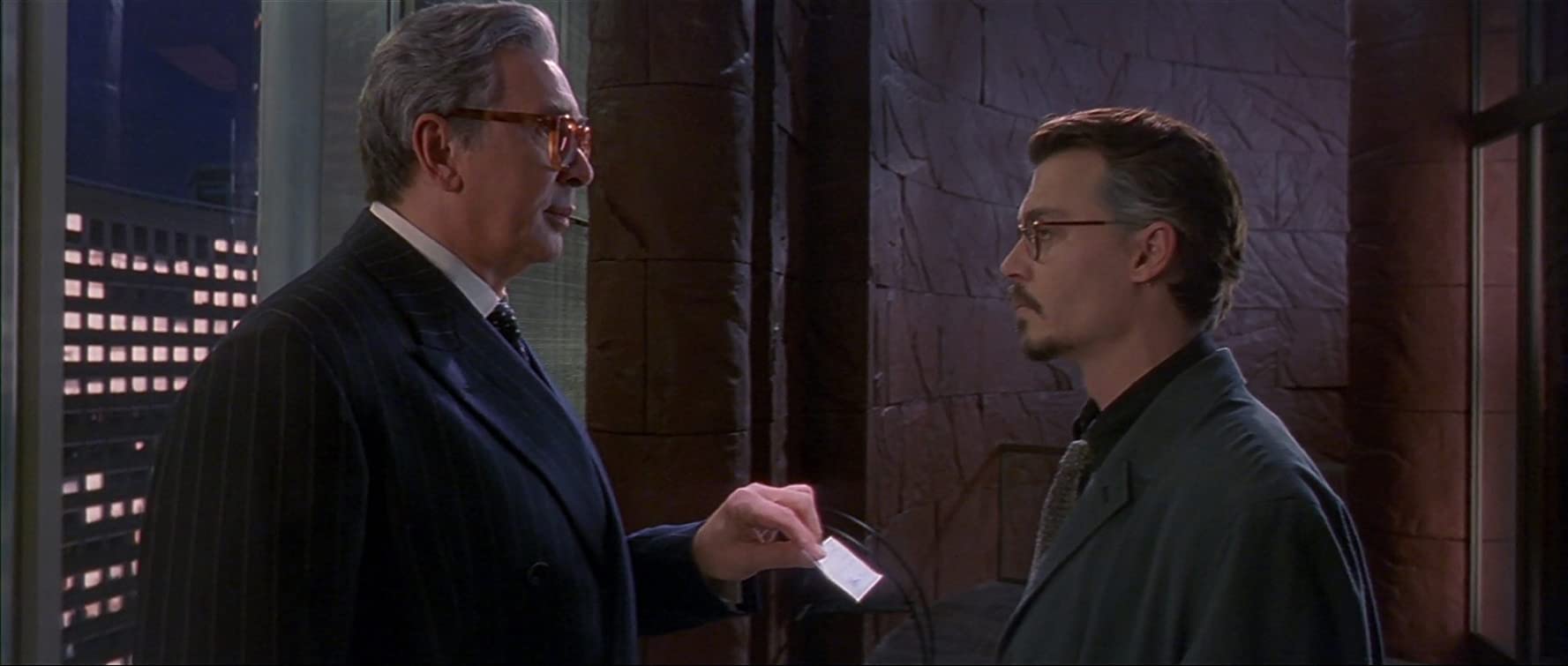 Dean Corso (Johnny Depp) is a dealer of rare books with loose morals. He gets offered a contract to investigate the authenticity of the rarest of books, The Nine Gates of the Kingdom of Shadows, just obtained by sinister book collector Boris Balkan (Frank Langella). Balkan is a full-on Devil fanboy, as you can tell by the code to his private elevator and the combination to this book vault. Corse has also noticed a girl with mismatched socks and green eyes (Emmanuelle Signer).