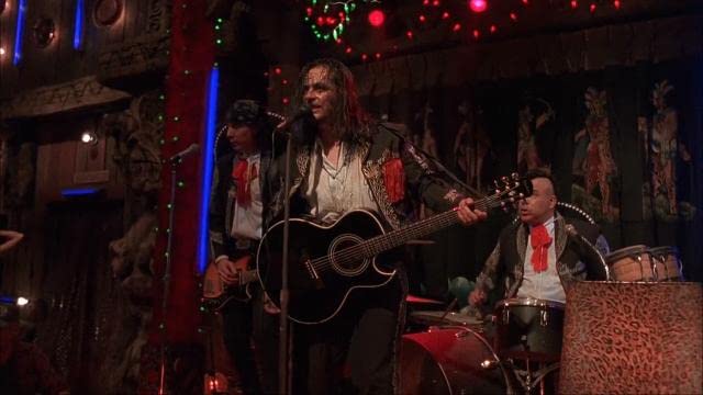 Cheech Marin plays triple duty as both a customs officer, an announcer at the bar and the Gecko brother’s contact, Carlos, who is supposed to get them to a sanctuary for criminal runaways. Other memorable side characters are bartender Razor Charlie (Danny “Machete” Trejo), cigar-smoking bad-ass Frost (Fred Williamson) and Sex Machine (Tom Savini). Even the house band is hard to forget, played by actual band Tito & Tarantula.