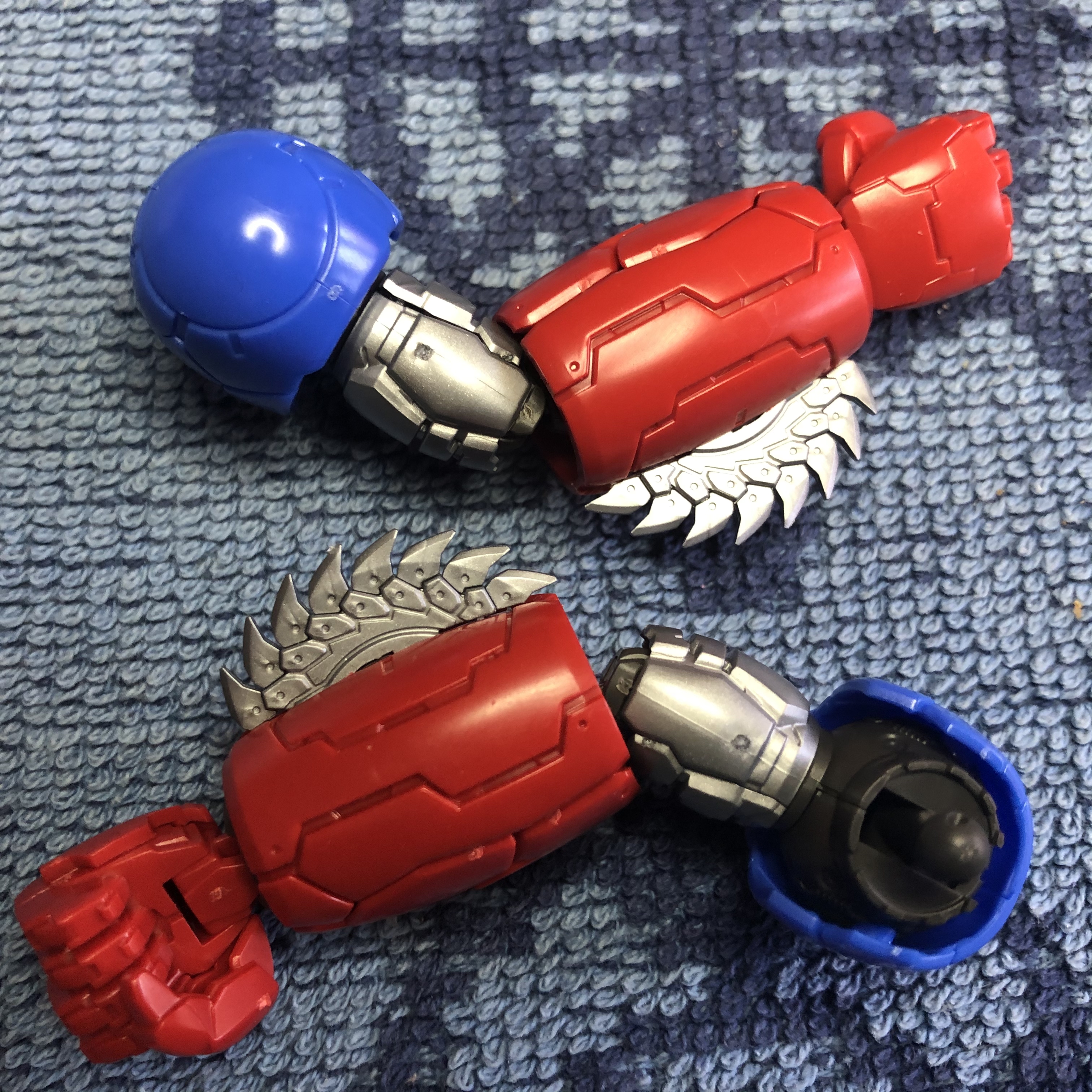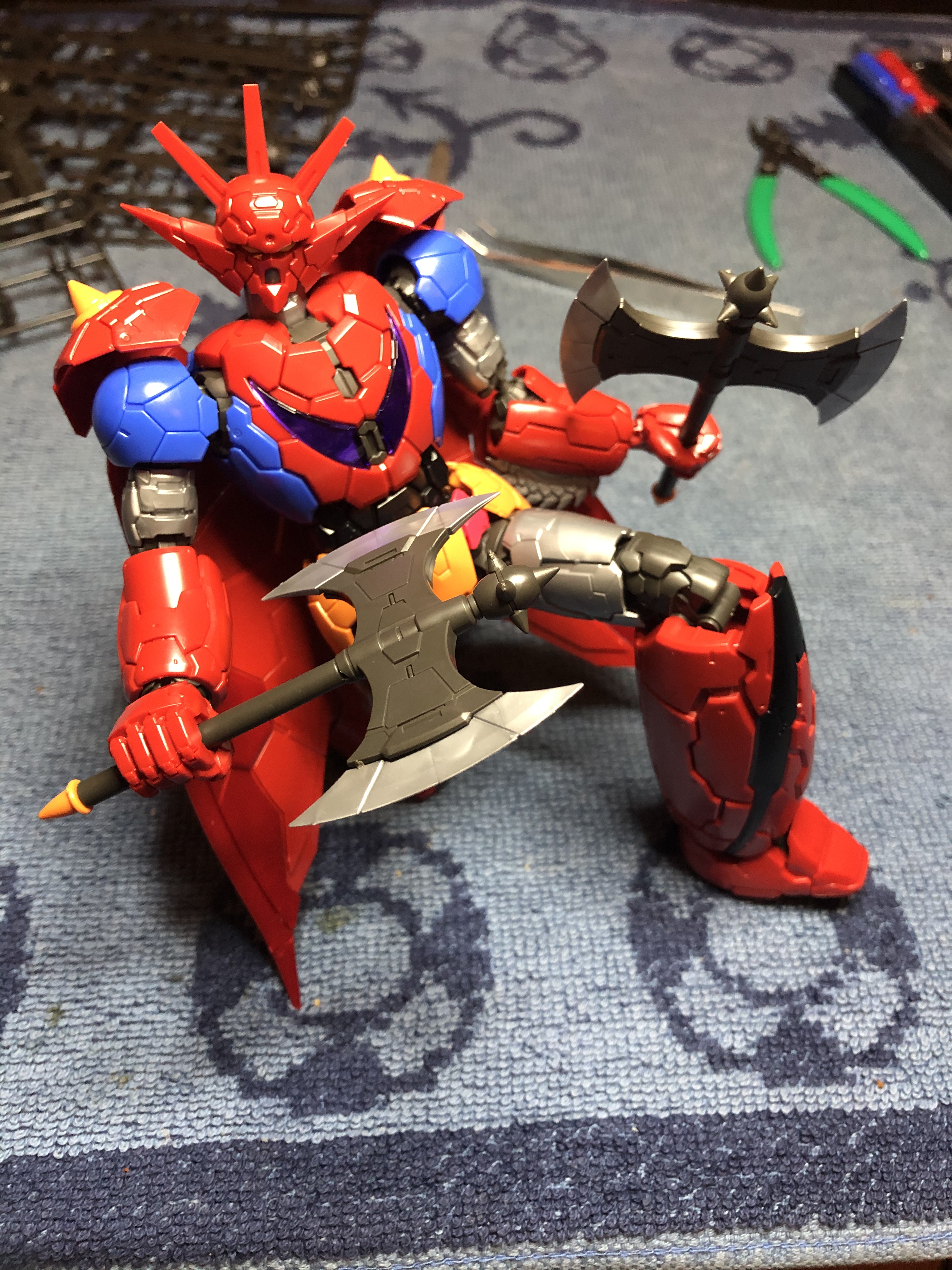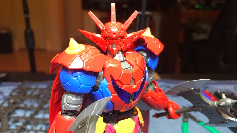 I remember Getter Robo appearing in a feature with both Mazinger Z and Great Mazinger that I saw when I was a kid. It was a movie put together of several episodes featuring several robots from Go Nagai. If I remember my lore correctly, Getter Robo was formed by three craft that could arrange themselves into several configurations. The most popular one, was Getter Dragon which had this red “cape”. Once again, this is the classical Infinitism model kit design with a few added modifications.