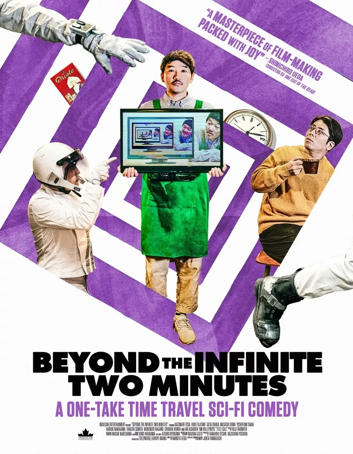Beyond The Infinite Two Minutes (2021) is directed by Junta Yamaguchi and written by Makoto Ueda. Kato (Kazunori Tosa) is a humble owner of a cafe that doesn’t really think about the future. One night, he’s done for the day and heading to his appartment upstairs when a voice calls to him from his monitor – his very own. And so begins a carefully constructed time loop that will involve his friends and co-workers as well as Megumi (Aki Asakura), the woman who works in the barbershop next door and who Kato has a crush on.