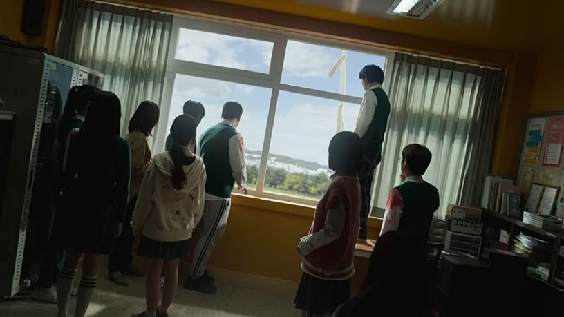 It works. I can’t quite point the difference, but it definitely both follows the zombie template and somehow subverts it. The almost obligatory comparison would be Train to Busan (2016), which is even mentioned at some point. To be fair, it’s not really the same dynamic. This feels a little like a local setting, as the school is for these kids their own private universe, now completely distorted and turned into a real life horror film. The level of detail of the zombie acting is fantastic and genuinely horrific.
