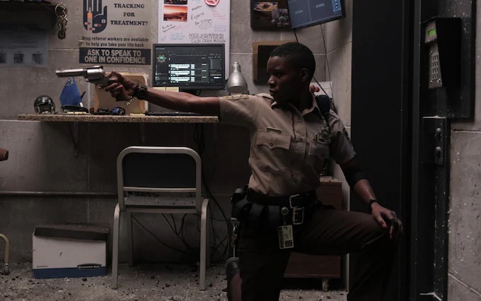 There’s a lot of things that works. Alexis Louder’s does a great job as badass officer Valerie Young, and I would argue she’s the real protagonist. The only injustice done to her character is when one of her colleagues tells her that she does something badass. That’s obviously the film making sure that the audience got the message, but it’s not needed: she was doing fine. I did appreciate that she makes a mistake with the shot that gets her, showing she can fail. On the other hand the gunplay game between her and Peña (Jose Pablo Cantillo) is childish and proves there’s no responsible gun owners among the filmmakers.