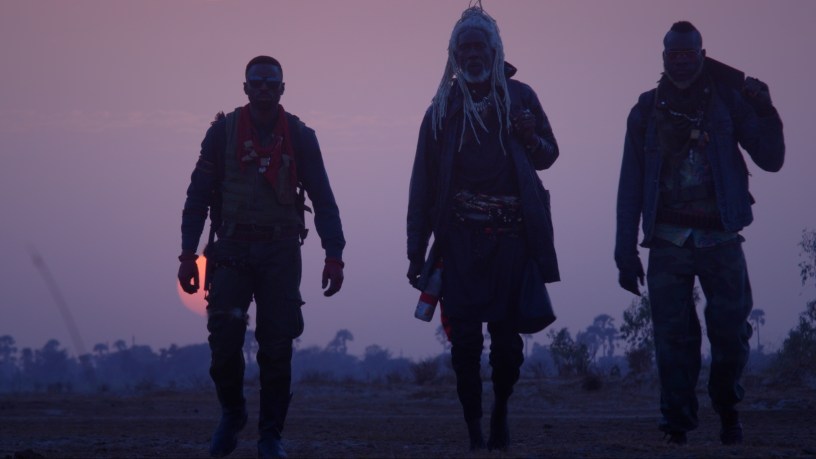 Saloum (2021) is directed by Jean Luc Herbulot who wrote the screenplay with producer Pamela Diop. Three legendary mercenaries known as the Bangui Hyenas: Chaka (Yann Gael), Rafa (Roger Sallah) and Midnight (Mentor Ba) have just retrieved a drug lord and obtained a considerable gold loot from Guinea-Bissou. Forced to make an unscheduled landing they hide out in a haunted region of Saloum, Senegal. There they find refuge with a local named Omar (Bruno Henry) who runs a camp where people can stay in exchange for small chores. However, everyone around them has secrets. Awa (Evelyne Ily Juhen), a deaf-mute woman who knows too much about the Hyenas, wants in or she will expose them to the local police captain. The worst secret is among the Hyenas themselves.