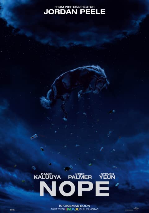 Nope (2022) is written and directed by Jordan Peele. OJ Haywood (Daniel Kaluuya) and his sister Emerald (Keke Palmer) take over the family business after the death of their father Otis (Keith David) in a freak accident. They train and provide horses for films. Business is not booming and OJ is forced to sell some of their best to western act showman Ricky “Jupe” Park (Steven Yeun). OJ has never believed the explanation for his father’s death, apparently hit by random debris falling from the sky at bullet speed. One time he witnesses a strange phenomena that makes him convince there’s something hiding amongst the clouds, something not of this earth.