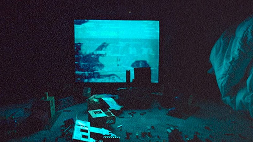 Skinamarink (2022) was written and directed by Kyle Edward Ball. Using grainy film and noisy audio, this movie does successfully create the atmosphere of an old film. Using shadows and low angles, you’re witness the environment inside a house where you can hear a father with his two kids getting ready for the night. You barely see their feet dangling from a couch, or their silhouettes in the distance. You never see their faces. Voices trickle through the dark and as the night progresses, doors and windows disappear and the children are left alone in the shadows. Light is scarce and comes only from the TV where the children play old cartoons or use a small flashlight to peer into the darkness.