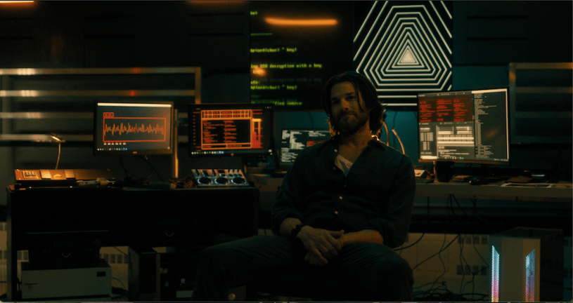 The A-Frame (2024) is written and directed by Calvin Reeder. Donna (Dana Namerode) has just been hit with terrible news. She has been diagnosed with bone cancer which has started to affect her hand. As a pianist, she’s terribly affected by the news and joining a support group lead by Linda (Laketa Caston) feels overwhelming. She’ll try anything, including new age crystals and reiki. But in her desperation, she also considers a strange offer by charismatic fringe scientist Sam (Johnny Whitworth) that involves a quantum displacer.