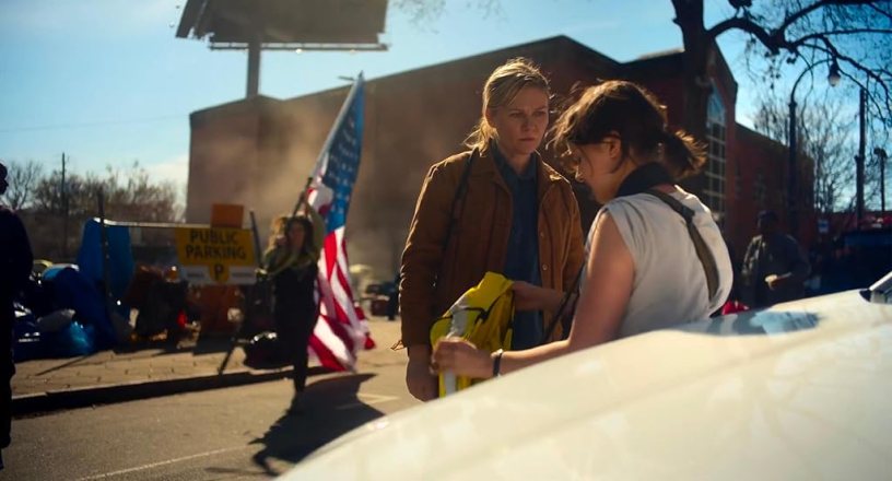 To add insult to injury, this background is used to tell a story about pseudo-journalists that do not get involved. Dunst’s character even reinforces this saying that they take pictures but “do not ask”. Journalism asks questions. You also see them inside a refugee camp at some point and they don’t think about taking a single picture. The concept of journalism in this film feels detracted from reality. If the story is lacking elements in its portrayal of war, it’s doing an even lousier job portraying what a journalist does. This is a socio-political fiction film with a lot of action that never criticizes anything.