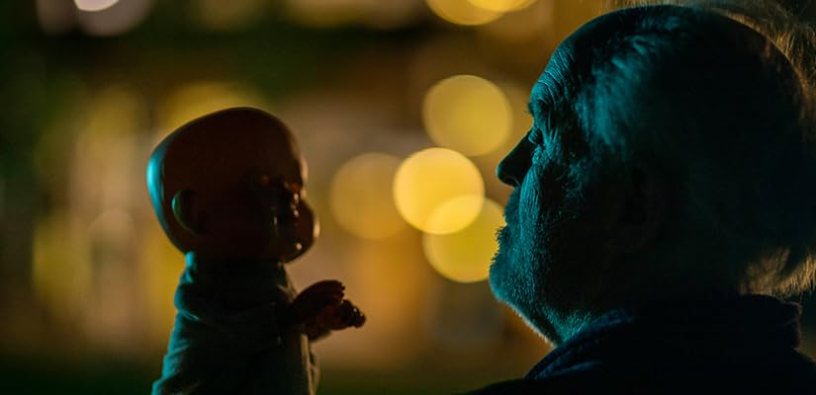 The Rule of Jenny Pen (2025) was directed by James Ashcroft, who wrote the script with Eli Kent. It’s all based on a short story by Owen Marshall. Judge Stefan Mortensen (Geoffrey Rush) has suffered a stroke that has left him partially immobile. He has been moved into a home for the elderly and shares a room with Tony (George Henare). Stefan sees most of the people and the home as below him, and his entitled act and constant complaints alienates the staff. However the real suffering doesn’t start until he meets the resident bully, Dave Crealy (John Lithgow). He acts aloof during the day, but at night he has the run of the facility, psychologically abusing and torturing the other residents using a children’s doll, Jenny Pen.